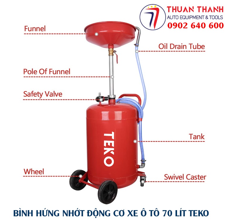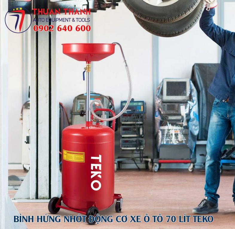 - Thiết bị hứng nhớt thải TEKO 70 lít hay bình hứng nhớt thải TEKO 70 lít là thiết bị dùng để hứng nhớt thải xả ra từ động cơ ô tô, hộp số, cầu truyền động ô tô. Giúp dễ dàng thay thế và loại bỏ vết bẩn, nhớt thải ra được thu hồi và chứa trong bình chứa