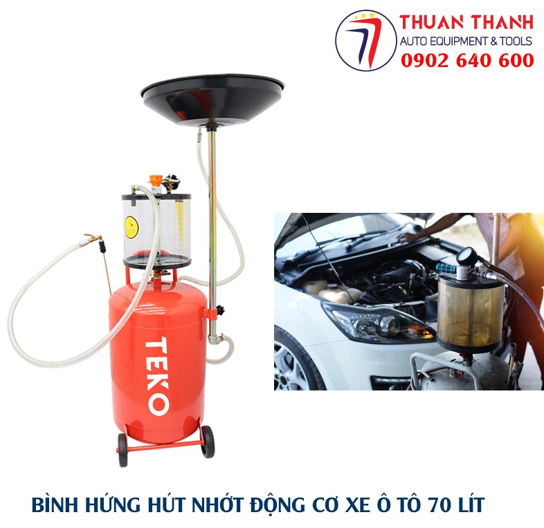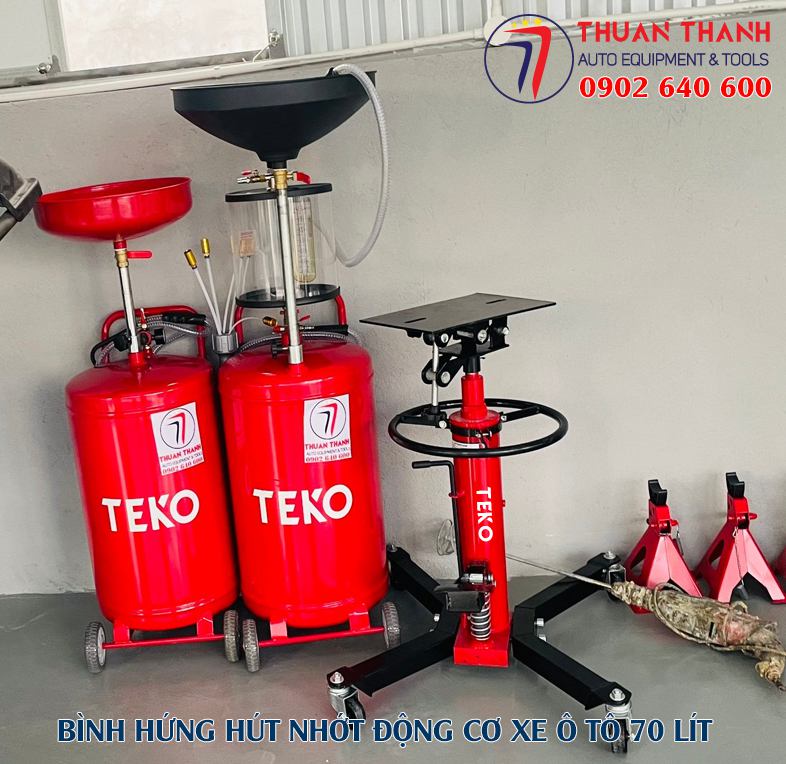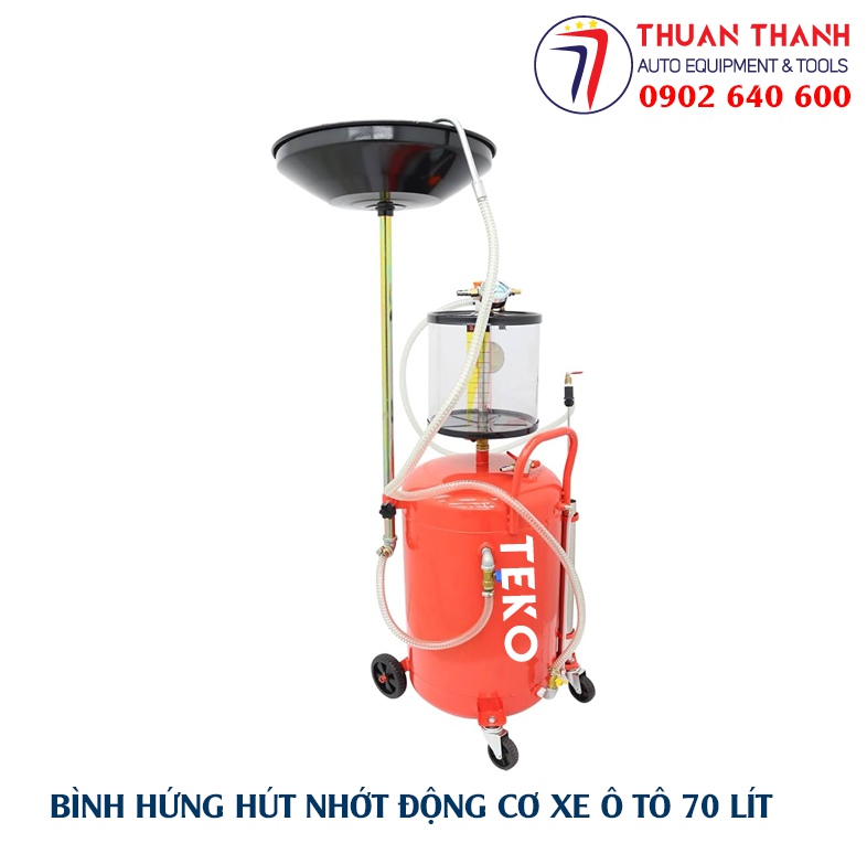 Thiết bị hứng hút nhớt thải TEKO 70 lít hay bình hứng hút nhớt thải TEKO 70 lít là thiết bị dùng để hứng nhớt thải xả ra từ động cơ ô tô, hộp số, cầu truyền động ô tô. Giúp dễ dàng thay thế và loại bỏ vết bẩn, nhớt thải ra được thu hồi và chứa trong bình chứa