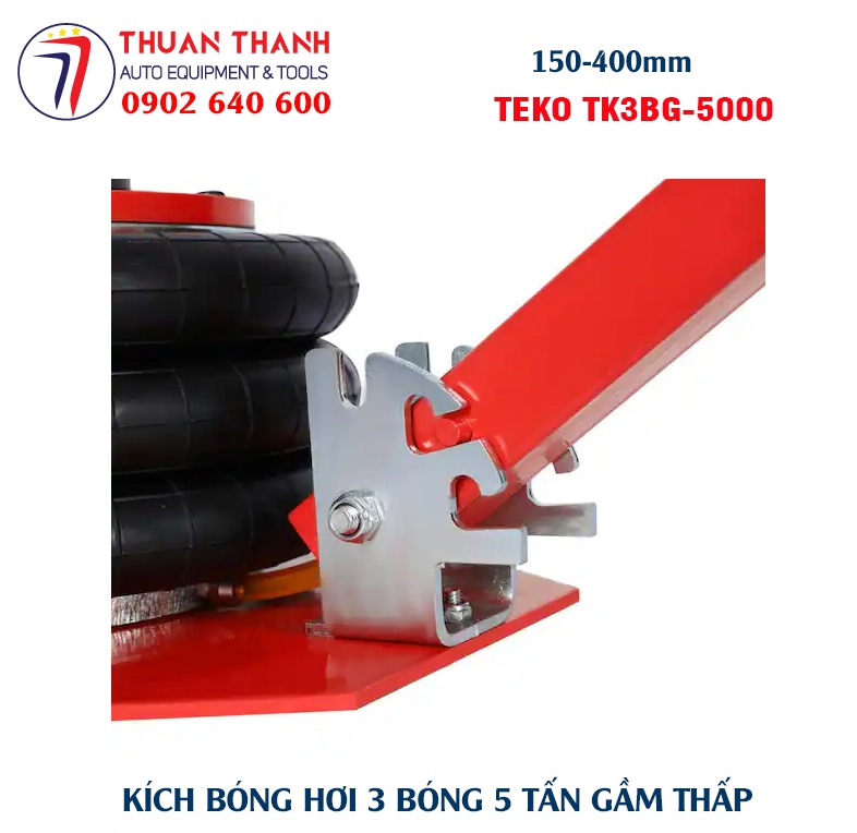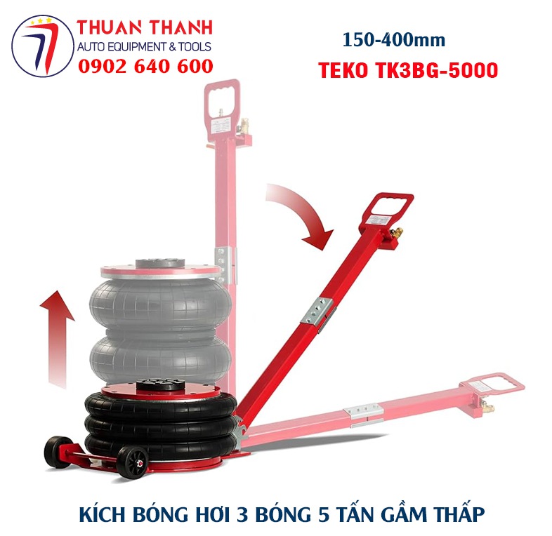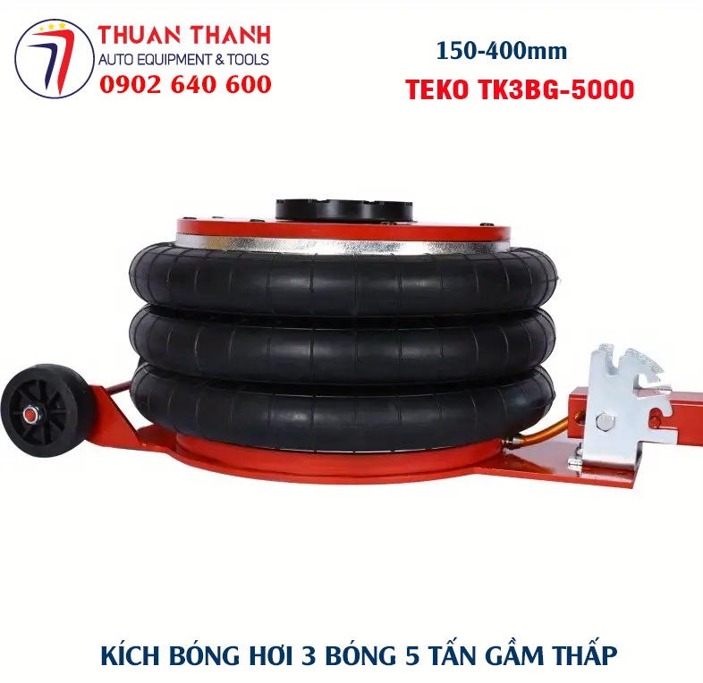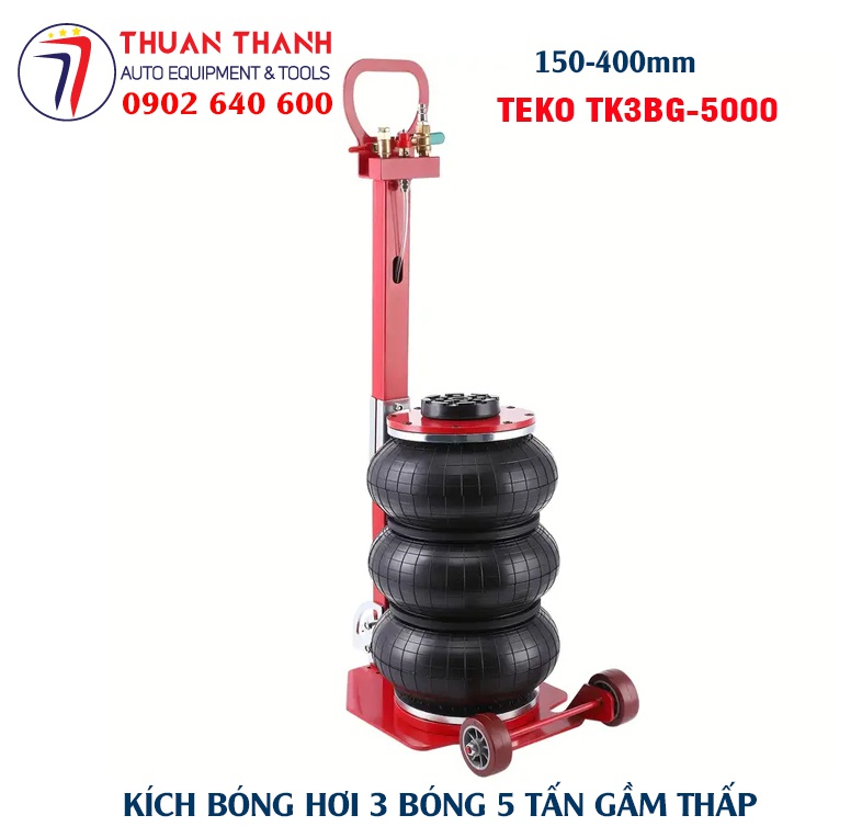 Kích bóng hơi 3 bóng 5 tấn hay kích hơi bong bóng 5 tấn là loại kích đội nâng hạ chuyên dùng để vận hành nâng hạ nhanh gầm xe du lịch các loại như xe bán tải, xe 7 chỗ, xe ô tô bán tải