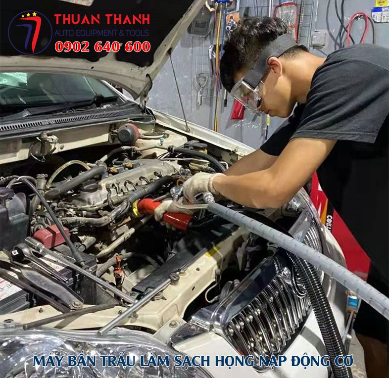 Các bước để sử dụng máy bắn trấu cho làm sạch họng hút cổ góp hút động cơ xe ô tô du lịch