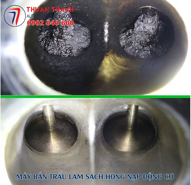 Bộ máy sử dụng khí nén kết hợp với trấu đánh bật muội than nhanh chóng nhưng không làm ảnh hưởng tới suppap và thành vách xy lanh